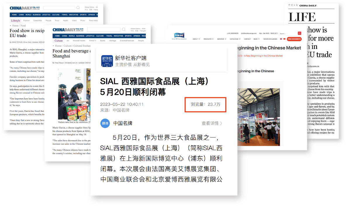 權(quán)威媒體聚焦,引發(fā)現(xiàn)象級(jí)報(bào)道 超600+家國內(nèi)外主流媒體、食飲行業(yè)媒體聚焦2023 SIAL西雅展(上海) | |||