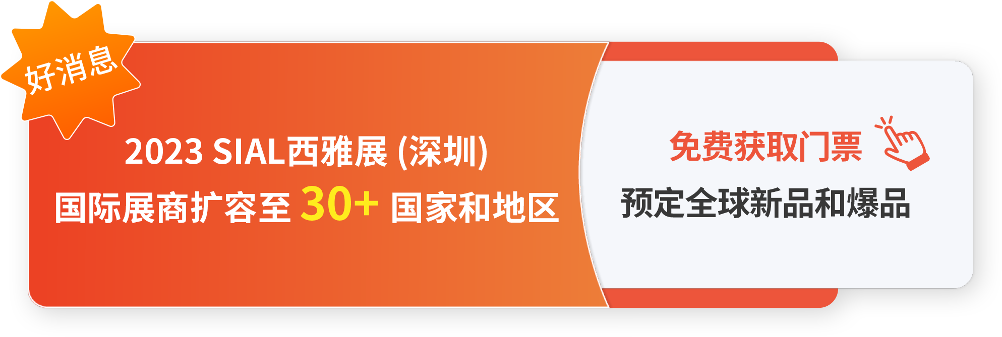 | 2023 SIAL西雅國際食品展(深圳)將于2023年8月28-30日在深圳福田會展中心拉開序幕。作為覆蓋全品類的華南國際食飲交易展,現場將有1,200+國內外食飲企業(yè)攜60,000+產品亮相,助您精準貿易對接。 |