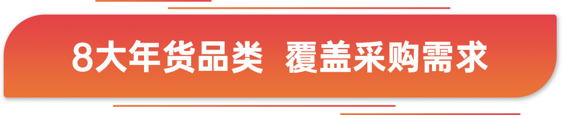 | 以食飲年貨采購為基礎(chǔ)需求,結(jié)合當(dāng)下市場消費熱點 打造8大年貨品類,基本覆蓋全場景采購需求 |