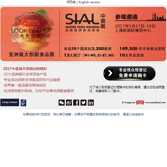 如果您對本隱私保護政策和/或數(shù)據(jù)處理有任何疑問、意見或建議,可以通過電子郵箱(info@sialchina.cn)與我們的數(shù)據(jù)保護官聯(lián)系。