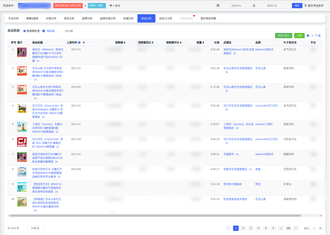 無(wú)糖飲料市場(chǎng)呈現(xiàn)顯著增長(zhǎng)趨勢(shì),2025年1-10月總銷售額達(dá)31.33億元,同比增長(zhǎng)9.86%,總銷量7433萬(wàn)件,同比增長(zhǎng)4.34%。市場(chǎng)供給充足,商品數(shù)達(dá)61,900個(gè),店鋪數(shù)11,067家,競(jìng)爭(zhēng)激烈。然而,市場(chǎng)從"野蠻生長(zhǎng)"進(jìn)入"精耕細(xì)作"階段,無(wú)糖茶品類銷售額同比出現(xiàn)下降,標(biāo)志著行業(yè)結(jié)構(gòu)性調(diào)整的開(kāi)始。