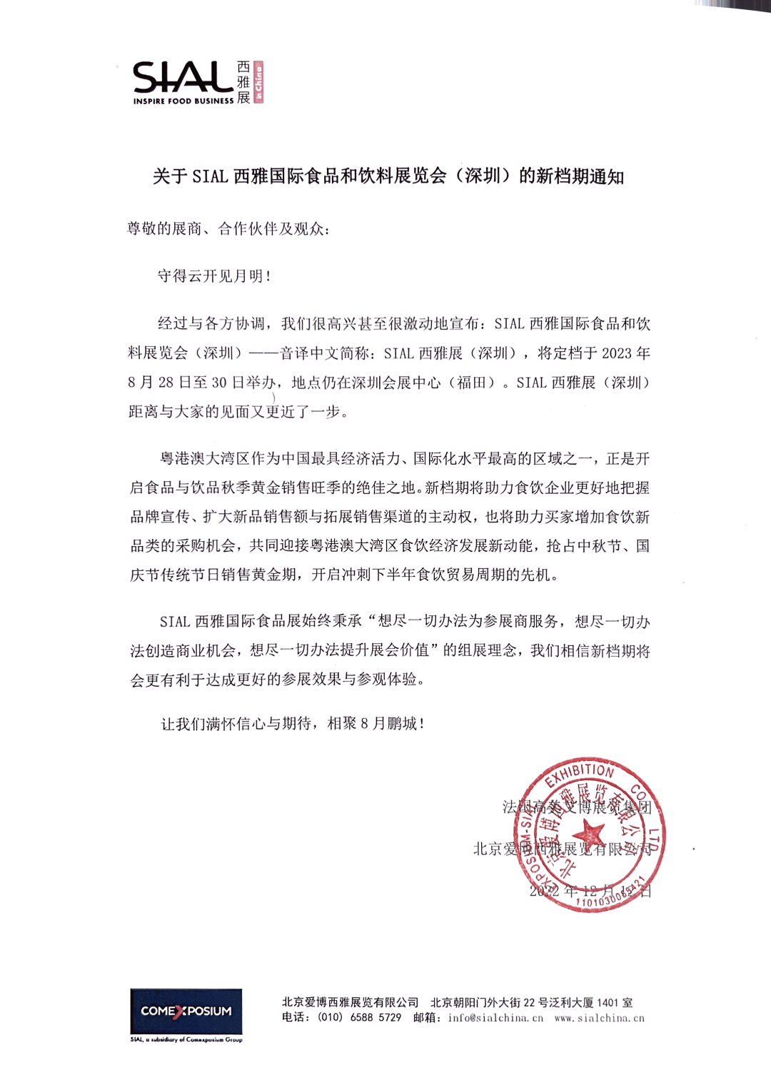 SIAL西雅國(guó)際食品展(深圳)的新檔期通知:2023年8月28日-30日舉辦