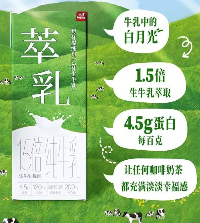 據(jù)介紹,萃乳由1.5倍生牛乳萃取,采用的是膜過濾提純技術(shù),濃縮牛奶中的蛋白和鈣,優(yōu)化掉多余的脂肪和鈉。每100g含有4.5g的蛋白,可搭配奶茶咖啡飲用。