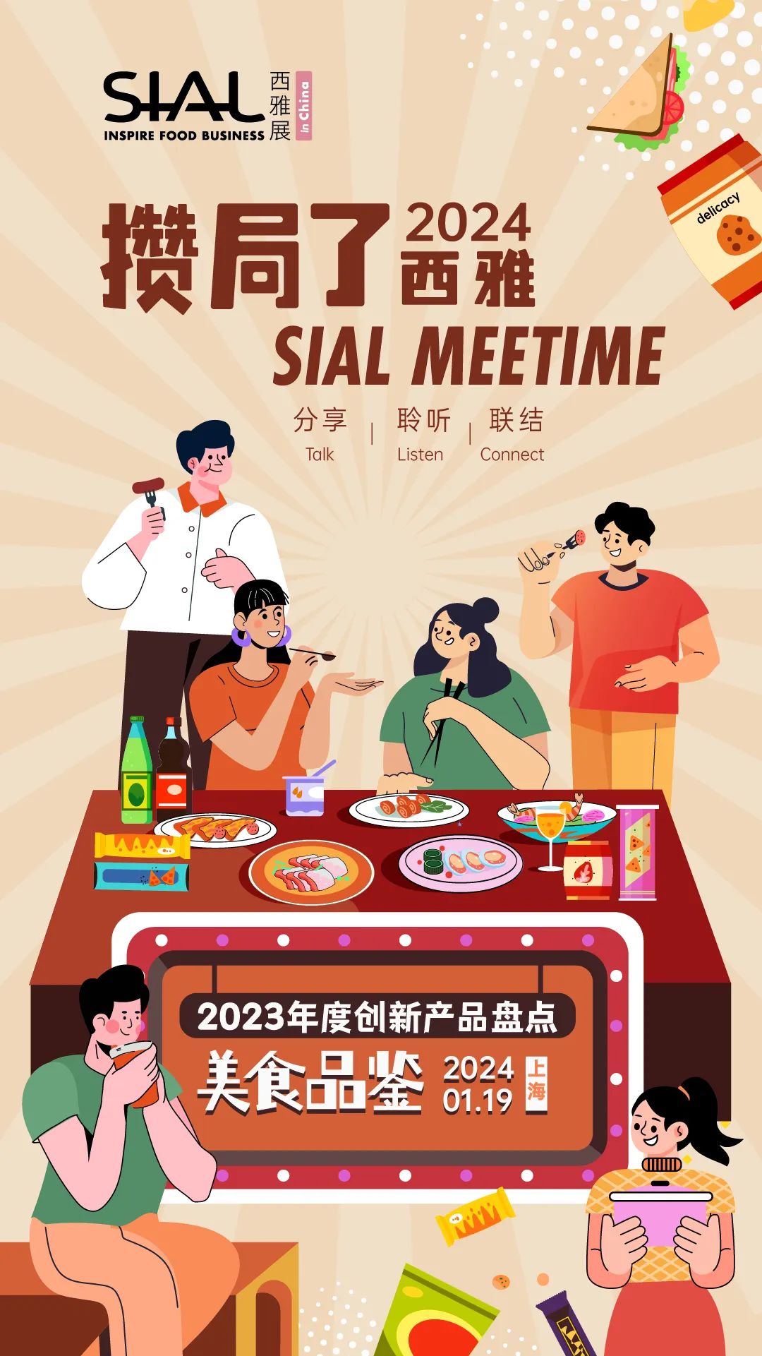 <SIAL Meetime 攢局了!西雅>是SIAL西雅展面向食飲行業(yè)推出的全新主題系列沙龍活動(dòng),每一期以不同形式主題活動(dòng)召集食品、飲料、餐飲行業(yè)從業(yè)者參與,在輕松愉悅的氛圍中獲取行業(yè)知識(shí),結(jié)交新的伙伴,開拓更多潛在商機(jī)。2024年,<SIAL Meetime 攢局了!西雅>將繼續(xù)舉辦多場(chǎng)精彩的主題沙龍活動(dòng),敬請(qǐng)期待!