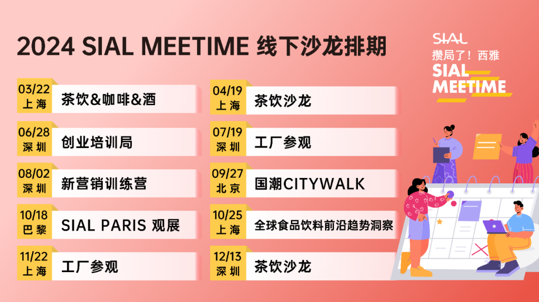 2024 SIAL Meetime 攢局了!西雅,將深耕食飲行業(yè)幾大熱門板塊,圍繞食飲人聚焦話題深度探討。召集食飲伙伴、精英群體拓建合作關(guān)系,結(jié)識(shí)商業(yè)人脈,把握風(fēng)口機(jī)遇,以更高效能突出重圍,提高品牌聲量。