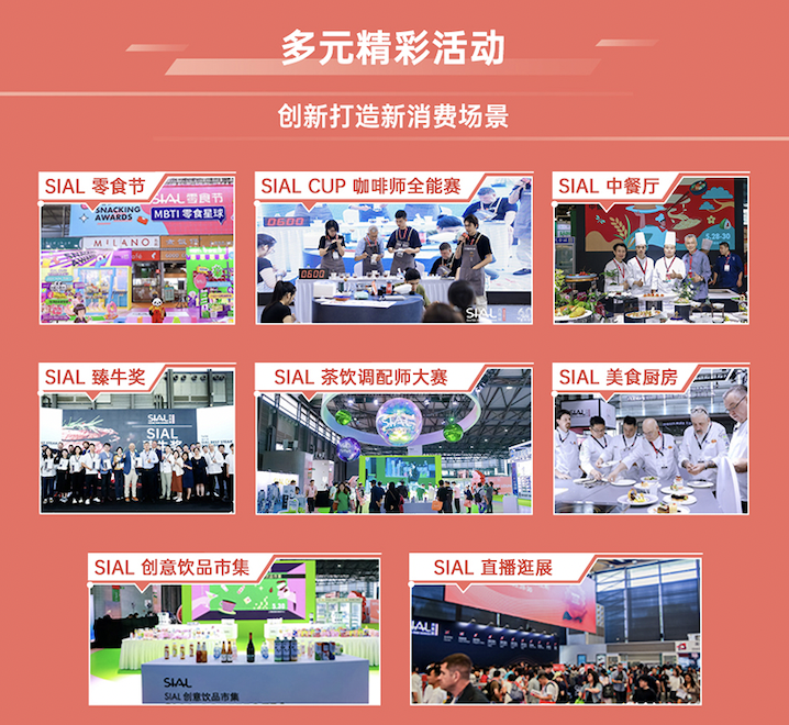 SIAL 西雅展始終以驅(qū)動(dòng)食飲行業(yè)的創(chuàng)新與高質(zhì)量發(fā)展為己任。在“Inspire Food Business”這一價(jià)值主張下,SIAL 西雅展還打造了SIAL INNOVATION創(chuàng)新大賽、SIAL世界食品產(chǎn)業(yè)峰會(huì)、SIAL in China Awards西雅國(guó)際金獎(jiǎng)等均具有行業(yè)引領(lǐng)意義的活動(dòng)和峰會(huì)品牌。這些活動(dòng)和峰會(huì),也將為參加SIAL 西雅展的展商和專業(yè)人士帶來行業(yè)創(chuàng)新發(fā)展的前沿動(dòng)態(tài)和趨勢(shì)觀察。
