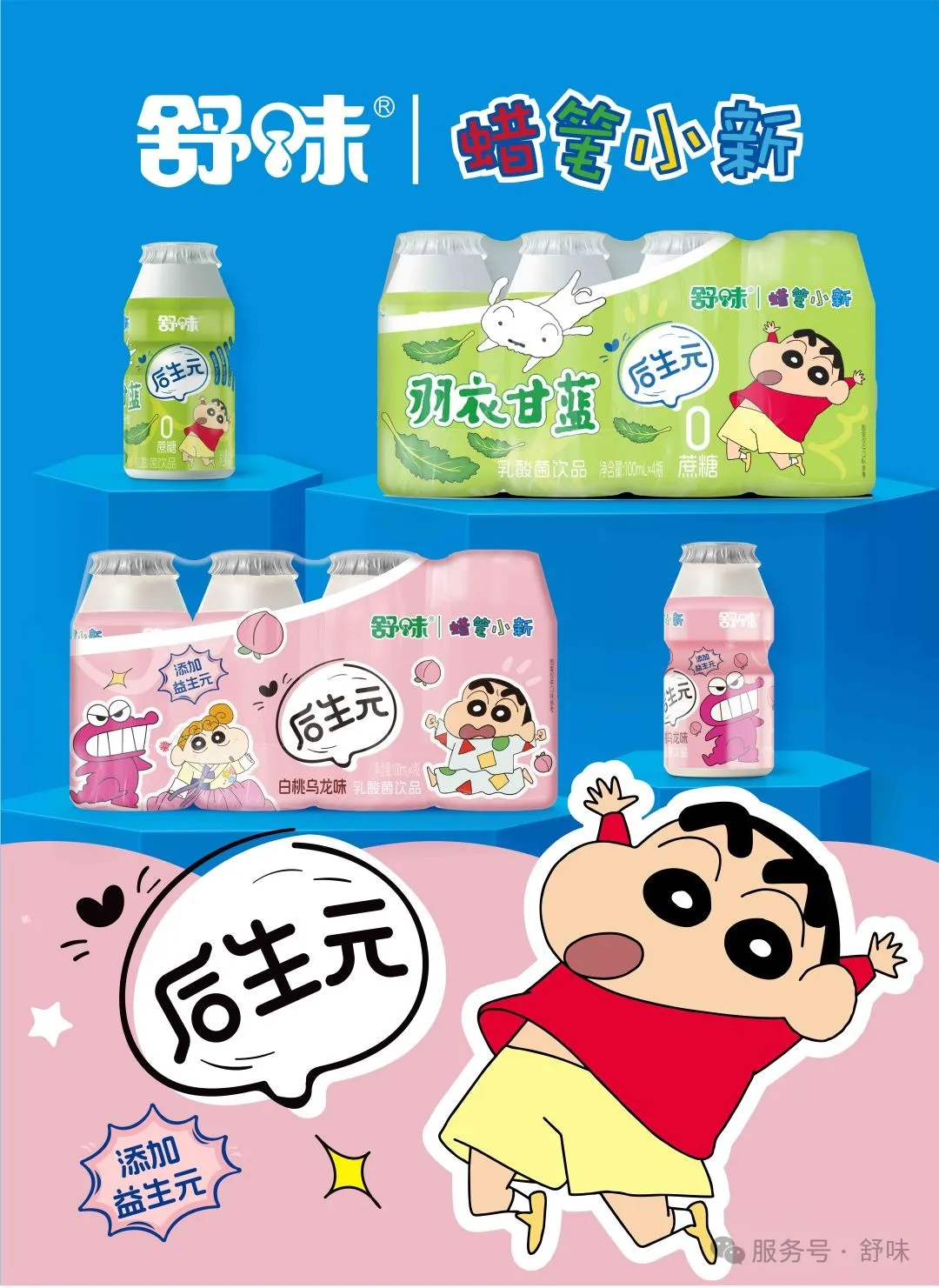 產(chǎn)品:主打蠟筆小新舒味AD鈣、后生元系列乳酸菌以及金銀花柚子汁等產(chǎn)品。